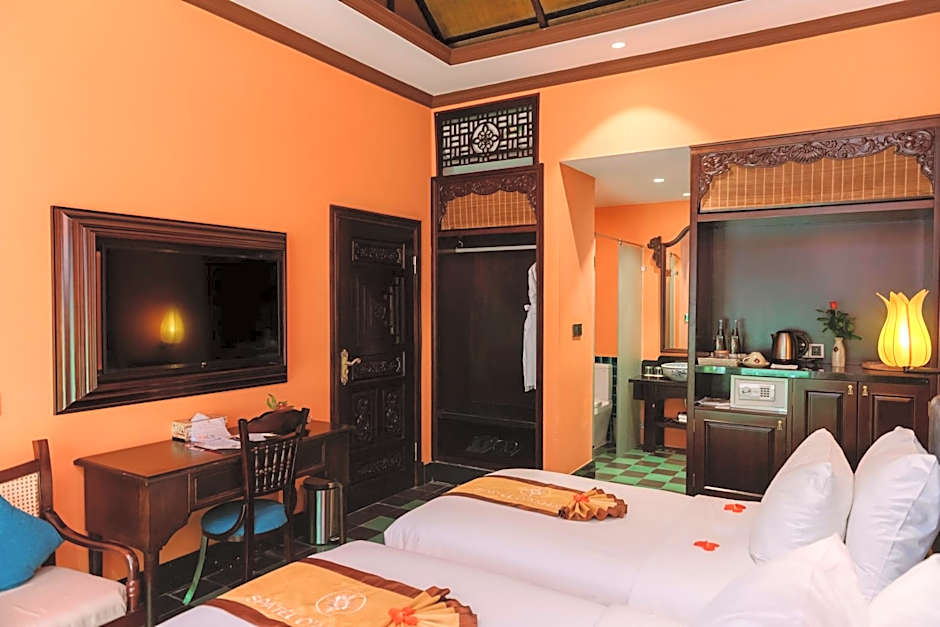 Start your day with a scrumptious breakfast, and then dive into the outdoor swimming pool for a refreshing morning dip. For those looking to unwind, indulge in fantastic spa treatments (extra charges apply) or simply soak in the sauna after a day of exploration. Spatel d'Annam also caters to families with kids' meals and a cozy garden terrace that’s just perfect for relaxing under the sun. And don't forget about the stunning views from your private balcony!